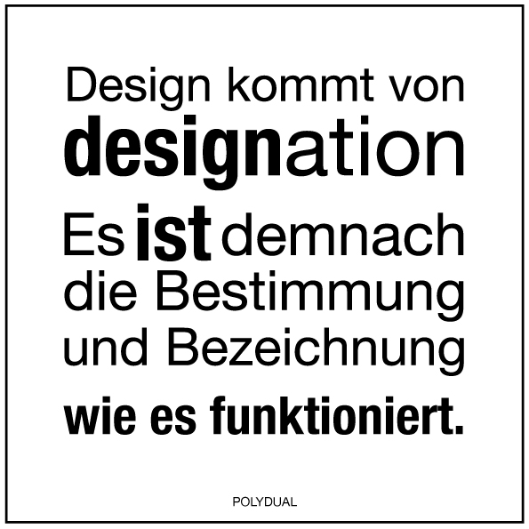 Wer kennt ihn nicht, Steve Jobs. Sein Vermächtnis ist nicht nur sein Designansatz, sondern auch die Designführung innerhalb der Markenführung. Ich habe den Ansatz leicht erweitert...: "Wenn Design als Prozess und Strategie und als Ausdruck von Stil gelebt wird, werden die richtigen Sehnsüchte geweckt. Dann sind deine Taten selbstähnlich deiner Selbst, stilvoll, emotional und verkaufsfördernd/ polydual.